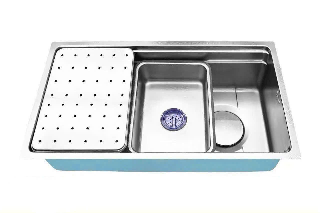 - Tích hợp phụ kiện thông minh: Thớt, rổ phụ và giá úp bát inox