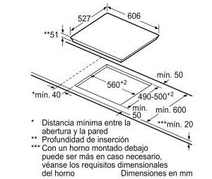 Vùng nấu trước bên phải: 1 x Ø 210 mm, 2.2 KW (có thể tăng đến 3.7 KW)- Mặt gốm thủy tinh Schott, vác cạnh trước, viền inox 2 cạnh bên