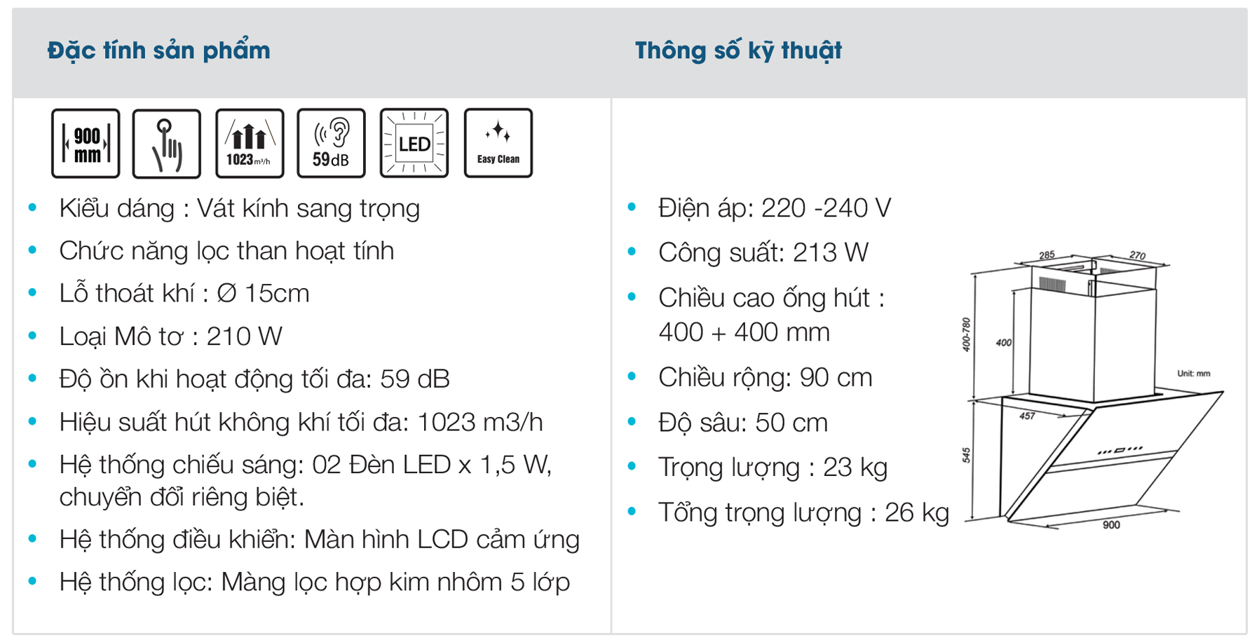 - Kiểu dáng hiện đại phù hợp mọi không gian bếp
