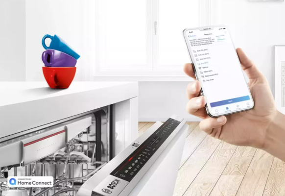 Tính năng Home Connect: Home Connect là tính năng công nghệ hiện đại trên các mẫu máy rửa bát Bosch thông minh. Sở hữu chiếc máy được kết nối với các thiết bị thông minh sẽ giúp cho cuộc sống hàng ngày của bạn trở nên dễ dàng và chủ động hơn. Chức năng Home Connect được kích hoạt qua WLAN. Chỉ cần có kết nối Wifi là bạn có thể điều khiển máy rửa bát hoạt động từ xa thông qua ứng dụng Home Connect 1 cách dễ dàng.