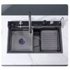 - Khay trên có khả năng điều chỉnh độ cao, linh hoạt khi cần không gian lớn ở khay dưới để rửa các vật dụng lớn. Đi kèm là giá đựng cốc được thiết kế 2 bên thành máy, có thể gập lên xuống để tăng không gian đặt để khi rửa.